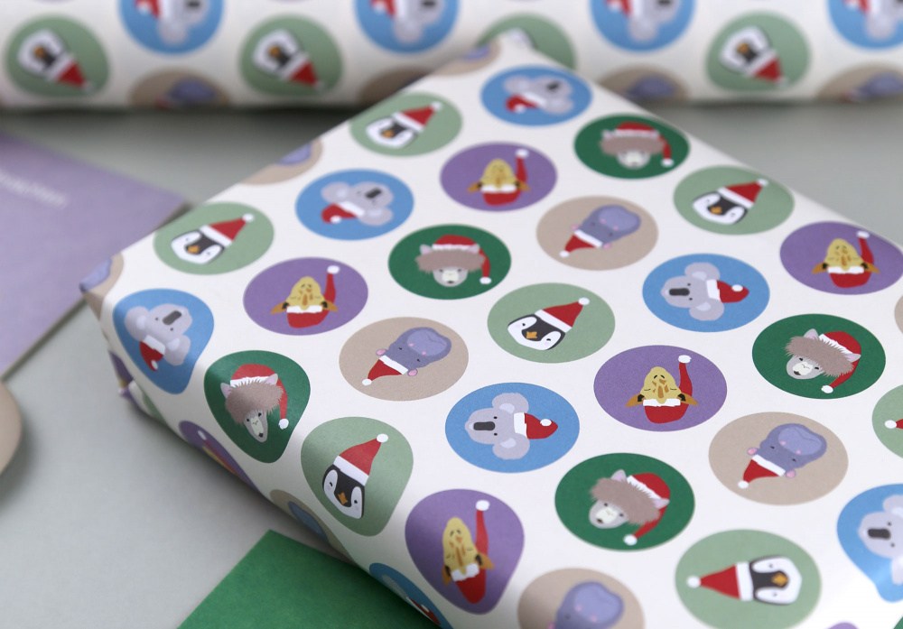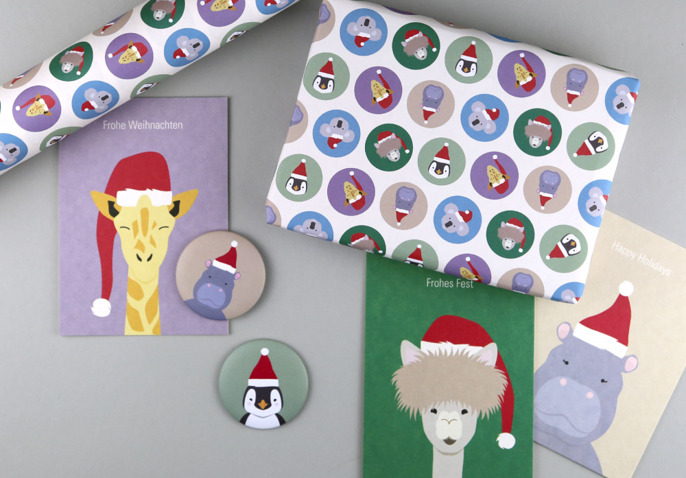 Unsere fröhliche Weihnachts-Serie „Gitte“ bringt tierischen Spaß unter den Weihnachtsbaum! Mit Alpaka, Giraffe, Nilpferd, Koala und Pinguin wird jedes Geschenk zum Hingucker. Das Geschenkpapier wird als einzelner Bogen im Format 50 x 70 cm geliefert. Die Rückseite ist unbedruckt. Es ist auf ungestrichenem Naturpapier mit matter, rauer Oberfläche gedruckt. Hier ist ein Beschreiben oder Bestempeln möglich. Da macht das Verschenken doppelt so viel Spaß!