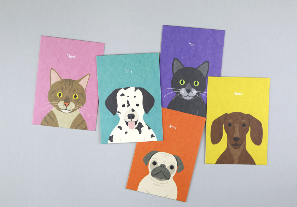Mit unserer fröhlichen Haustier-Serie Gitte versendest du tierisch humorvolle Grüße. Zu der Serie gehören zwei Katzen und drei Hunde. Die Besonderheit: Gitte ist auf 1,4 mm Holzschliffpappe (580g) gedruckt, die der Karte eine ganz besondere Haptik verleiht. Naturpapier ist sehr saugfähig, daher empfehlen wir für deine Botschaften einen Kugelschreiber oder Fineliner zu verwenden.